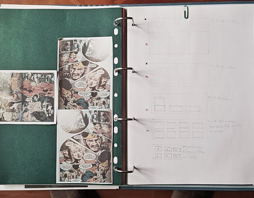 Como os comentaba en el post anterior, la maquetación fue en forma de cómic, a base de viñetas. Os pongo una hoja donde dibujé algunas basadas en otros comics.