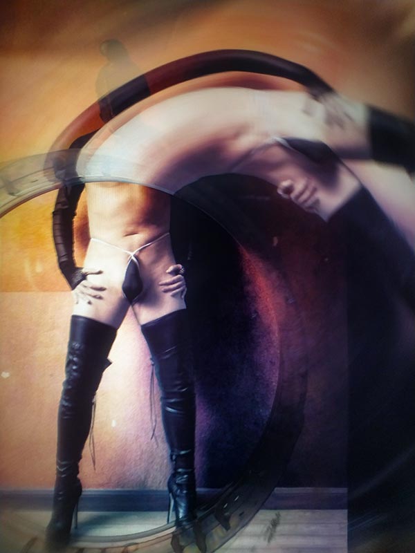 En el caso de LD&R (2020 – ) se trata de una serie abierta que llevo a cabo cargando fotografías propias en la pantalla del ordenador y las refotografío, bien con el móvil bien con una cámara reflex, anteponiendo algún elemento distorsionador al objetivo. Vasos de cristal vacíos, botellas a medio llenar, plásticos mojados, cajas de plástico con algún elemento en su diseño que tenga relieve…etc